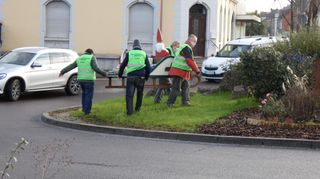 Noch ein, zwei Fragen; ein paar Fotos; die Karawane zog weiter. Nur Jürgen I. blieb zurück. Er wird hoffentlich bis Mitte Januar Autofahrer und Fußgänger grüßen. Die ersten Kinder hat er tatsächlich schon während der Aufbauarbeiten zu freudigen Ausrufen verleitet - für uns der Beweis, dass unser Engagement nicht ganz falsch ist.