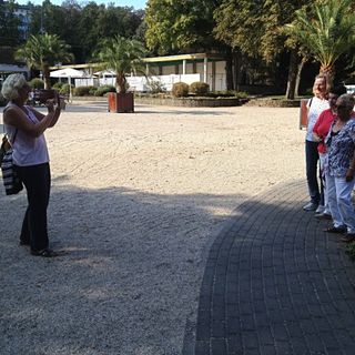 Einige unserer Damen spazieren durch den fast schon herbstlichen Park. Erinnerungsfotos werden geschossen. Erst eine kleine Gruppe, dann kommt ein netter junger Mann dazu und muss natürlich auch auf's Bild: