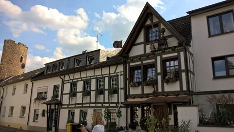 Über die Hauptstraße erreichen wir den Stadtteil Ahrweiler und umrunden ihn entlang seiner alten Stadtmauer. Als wir durch das Ahrtor in die Altstadt einfahren, gelangen wir in eine andere Welt: kleine enge Gässchen, alte Häuser, viele Lokale und kleine Geschäfte. Welch ein Gegensatz zu Bad Neuenahr! Vor der Tourist-Info hält unser Zug; einmal um die Ecke rum – und wir stehen vor dem Hotel-Restaurant „Zum Stern“.