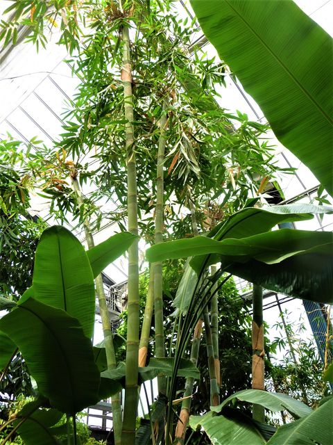 Betritt man das Pflanzenschauhaus, stößt man zunächst auf – Kakteen! Nach unserem Steinfeld-Besuch erregten sie naturgemäß relativ wenig Aufmerksamkeit. Die galt dann mehr den Gräsern und Farnen. Unglaublich, was der Riesen-Bambus