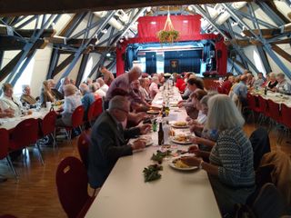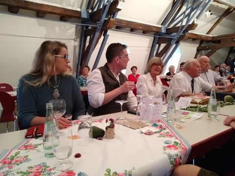 Es folgte ein klasse Mittagessen – das ließen die meist sauber geleerten Teller vermuten. Nur mit natürlichen Mitteln, ohne deklarationspflichtige Zusatzstoffe war es zubereitet worden – ideal passend zu dem Bio-Wein aus dem Pfälzer Weingut, das wir zum Abschluss unserer Vereinsfahrt im Frühsommer besucht hatten. Dem Verzehr nach hat auch der Rebensaft geschmeckt.