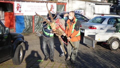 In der Adventszeit warten im Kreisverkehr Saarstraße / Lindenstraße seit 2016 regelmäßig ein Schlitten und ein Rentier auf ihren Chef, den Nikolaus. Der hat sich jedoch nie blicken lassen. Nach etlichen Rückfragen hat er endlich zugegeben, dass ihm der alte Schlitten nicht bequem genug erscheint. Außerdem wirkte ihm das Rentier zu steif, zu hölzern. Fazit: Entweder bieten wir ihm mehr Komfort oder er kommt nie.