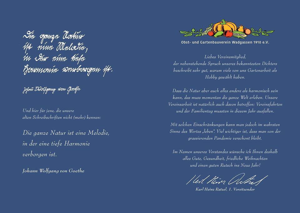 Die Rückseite der Weihnachstkarte dürfen wir aus Datenschutzgründen leider nicht abbilden: Hier sind die Namen aller unserer 233 Vereinsmitglieder aufgelistet Eine klasse Idee, die bei den Adressaten prima angekommen ist.