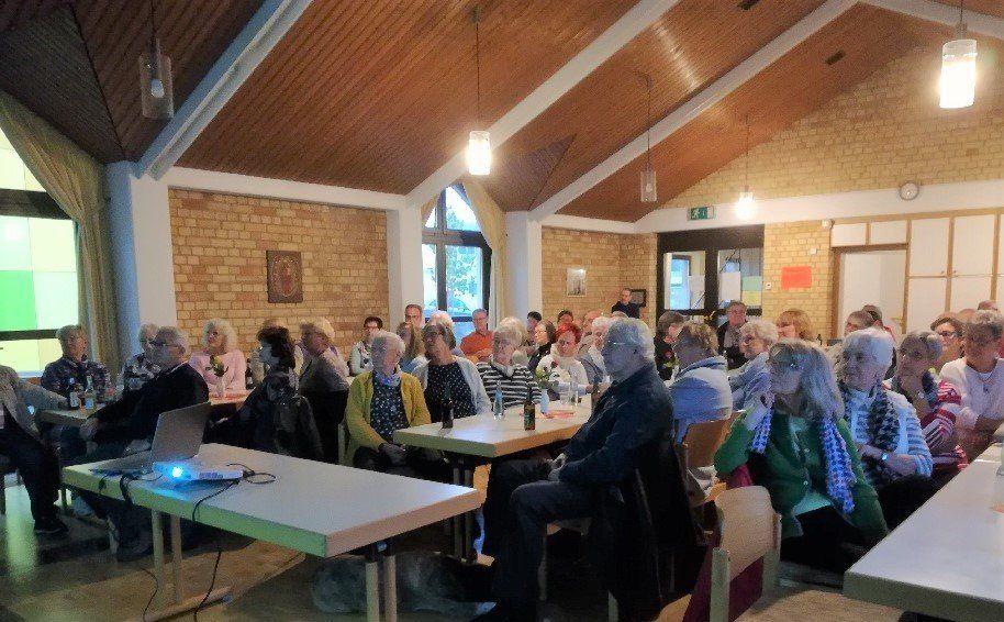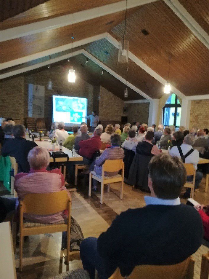 Bis kurz vor 17:00 Uhr ist er noch in Zweibrücken für eine Fortbildungsveranstaltung verpflichtet, schafft es aber trotzdem, noch rechtzeitig ins Pfarrheim zu kommen und den Zustrom der Besucher mit zu erleben. Der Saal wird voll, nur die Minderheit gehört unserem Verein an. Die vorhandene Bestuhlung reicht jedenfalls nicht aus und zusätzliche Stühle müssen aufgestellt werden. Damit ist unsere größte Unsicherheit schon beseitigt. Denn dass der Vortrag bei den Hörern nicht ankommen würde, das können wir schlichtweg ausschließen.