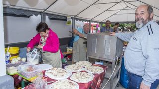 Erstmals war unser Verein zur Teilnahme am Schulfest der Abteischule eingeladen worden; unsere Aufgabe: Backen von Flammkuchen. Dank jahrelanger, auf dem Pfarrfest erworbener Routine war dies kein Problem. Die ersten Flammkuchen waren schnell zubereitet und fanden sofort ihre Abnehmer. Offensichtlich schmeckten sie auch richtig gut, denn sie wurden immer wieder ausdrücklich gelobt.