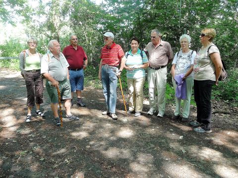 Mit gerade mal 10 Personen hatte sich die zahlenmäßig wohl kleinste Gruppe der letzten Jahre am letzten Samstag am Schützenhaus getroffen, um die verspätete Frühjahrswanderung unseres Vereins nachzuholen. Kurz vor Beginn des kalendarischen Sommers waren nicht nur recht warmes Wetter und gesundheitliche Einschränkungen einiger treuer Wanderer schuld an der gegenüber dem Vorjahr halbierten Teilnehmerzahl, auch die Konkurrenz durch offizielle Veranstaltungen – hier seien nur der Jòòrmarkt und das Klassikkonzert im Schwimmbad genannt – kosteten uns Teilnehmer.